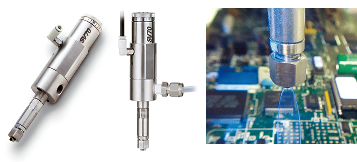 • 共形涂覆胶阀SV70:通过液膜流动实现均匀涂布,不产生雾化;