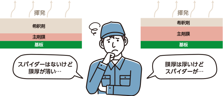 ■ 过度稀释虽能防止蜘蛛网现象,但会导致膜厚不足